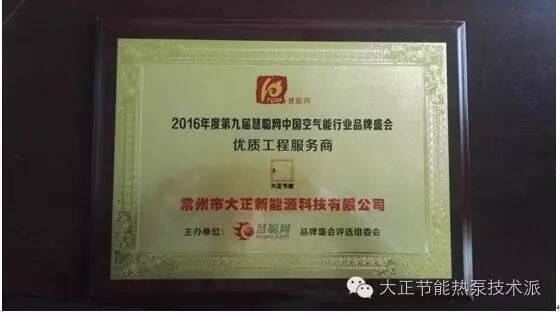 該獎項旨在表彰在空氣能領域建立好良好的口碑,在長期服務的過程中以技術、品牌和服務態(tài)度贏得了用戶的尊重,值得用戶信賴和推舉的優(yōu)秀空氣能行業(yè)工程服務商。這些企業(yè)是以“空氣能工程”為主要業(yè)務資質(zhì)企業(yè),注冊成立時間在兩年以上,在空氣能行業(yè)具有較高的知名度與良好的口碑,近年業(yè)績保持穩(wěn)步增長,在2015—2016年度有突出表現(xiàn),并且在工程服務項目中有突出成績。